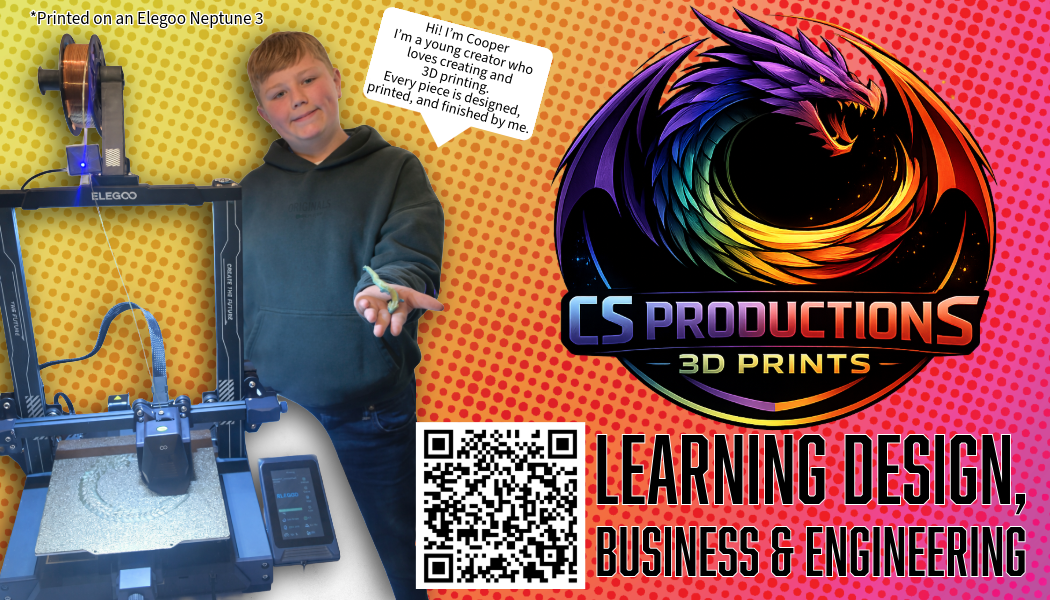 Cooper is a young maker creating custom 3D-printed designs with creativity and precision. Each piece is printed with care, attention to detail, and a passion for turning ideas into something real.