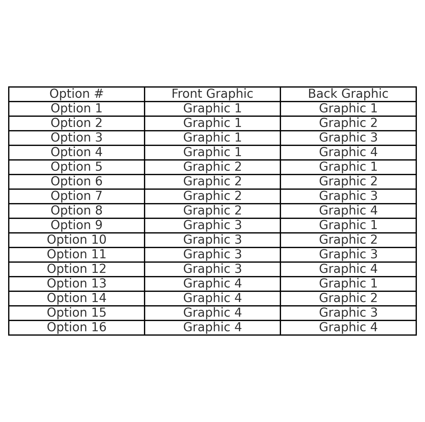 GRAPHICS CAN BE MIXED AND MATCHED BY REQUEST!