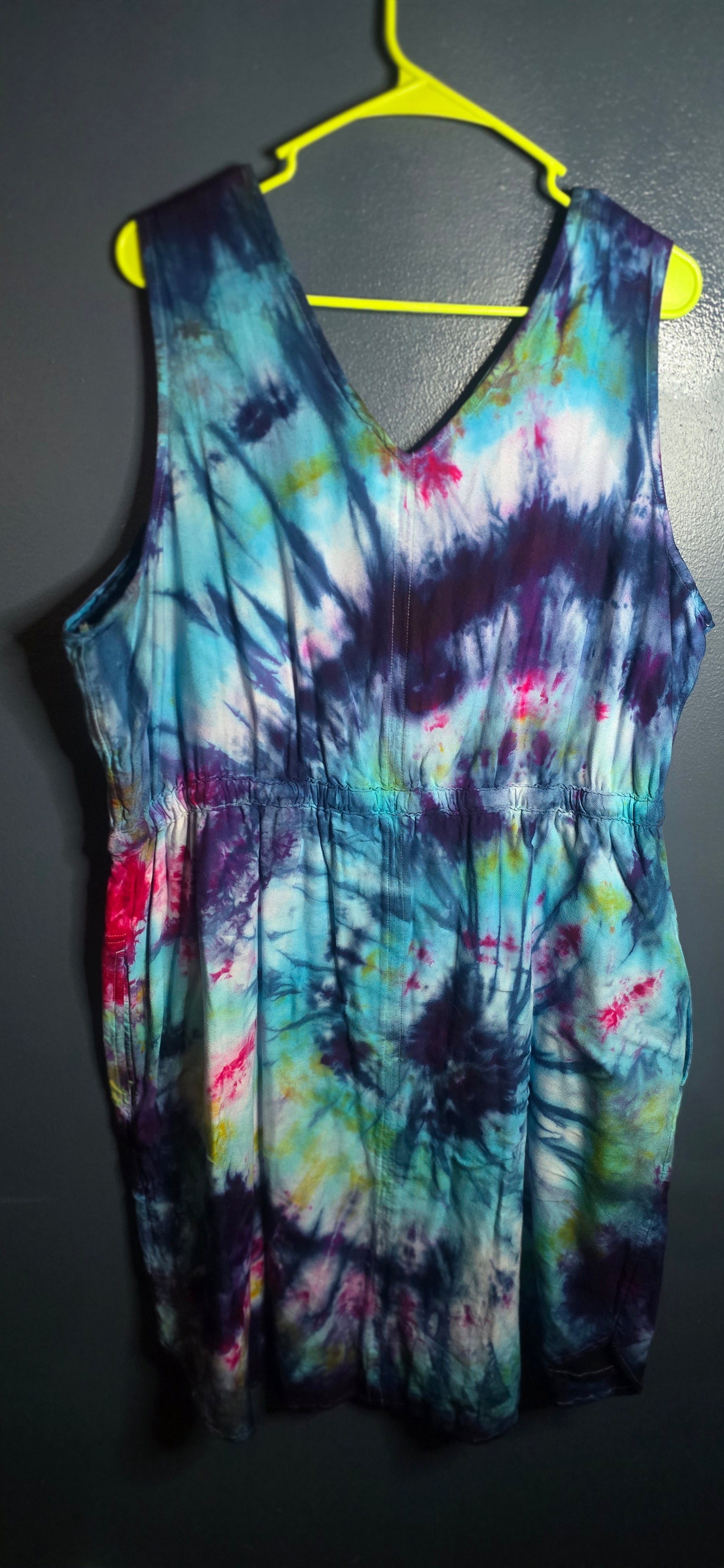 Time & Tru XXL Tie Dye Dress – Hand Dyed Ice Dye Rainbow Sleeveless Summer Dress.