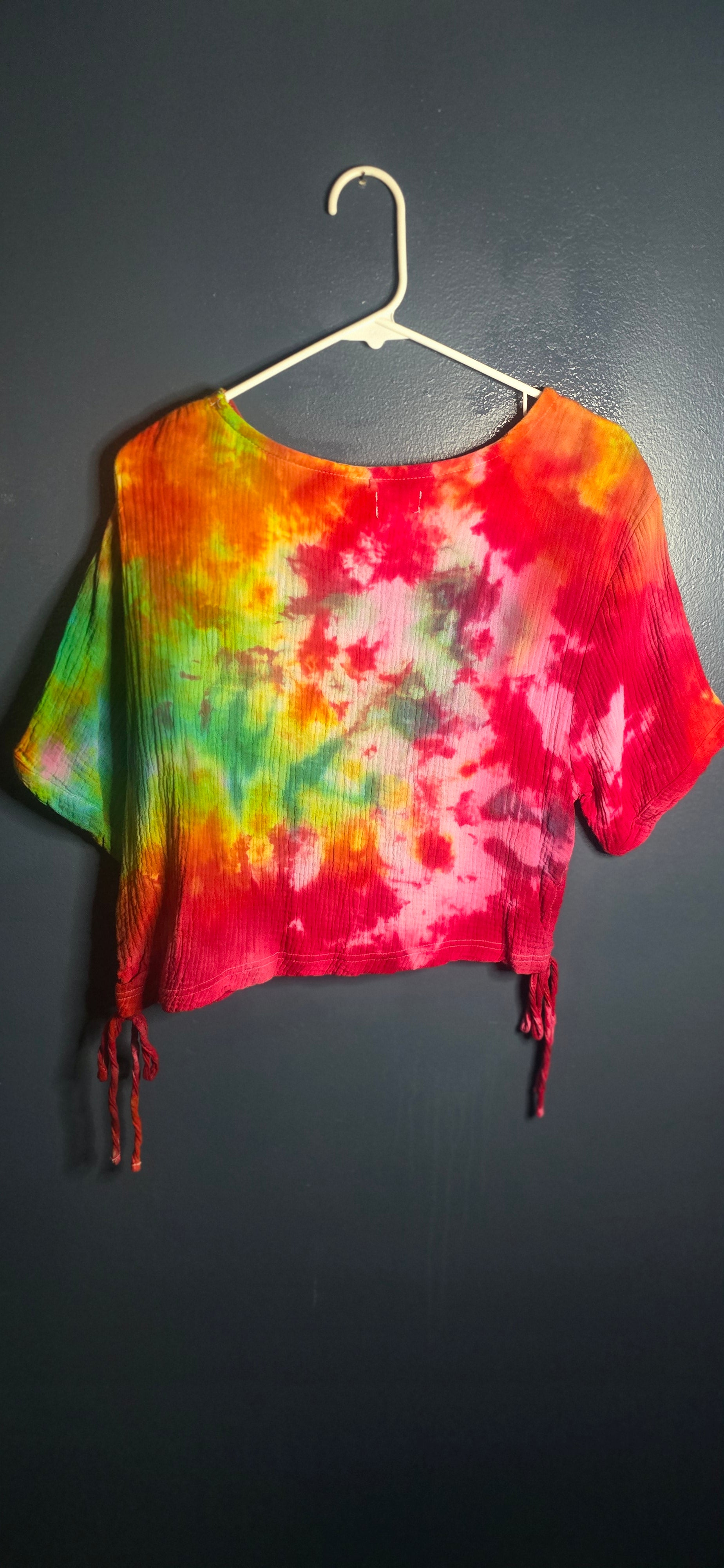 Tie Dye Ribbed Crop Top XL Women’s Short Sleeve Side Tie Multicolor