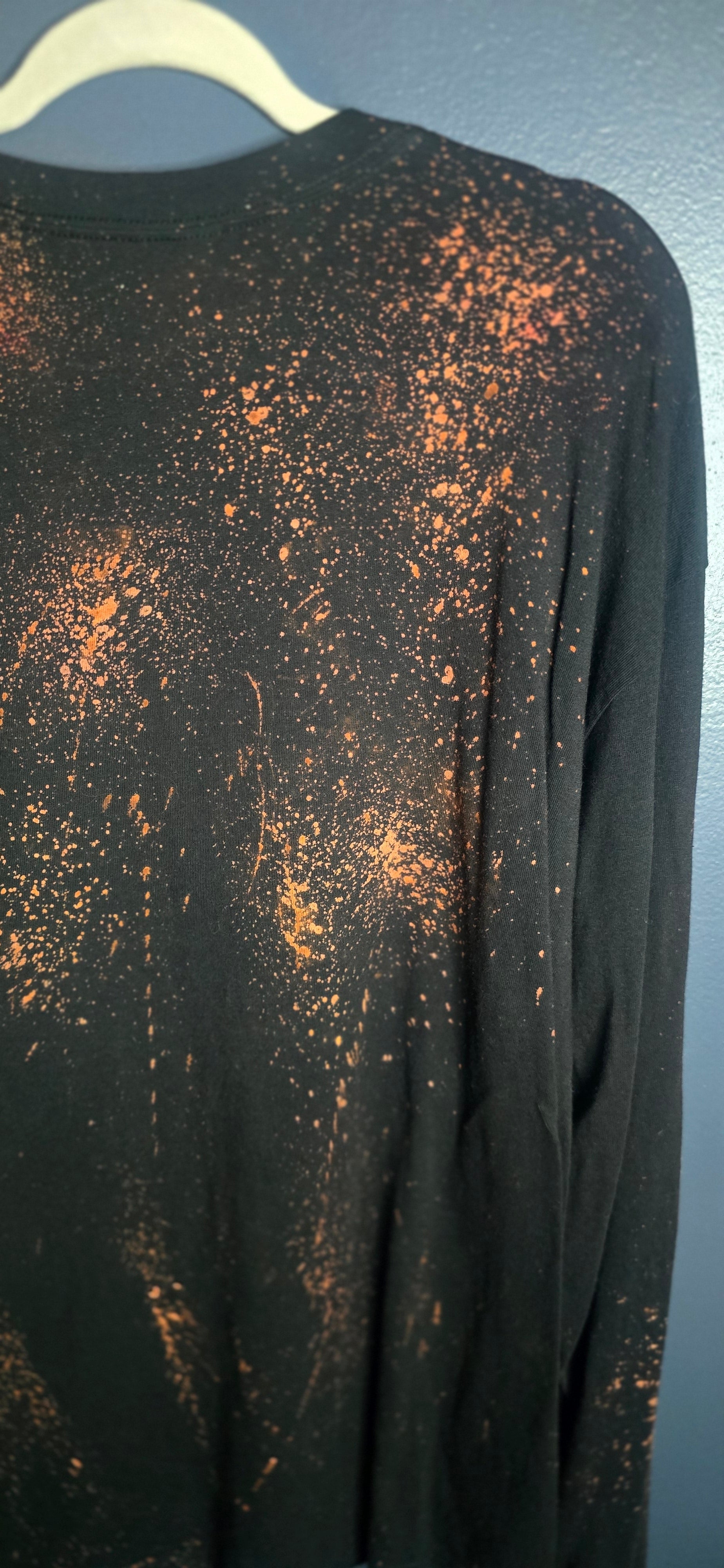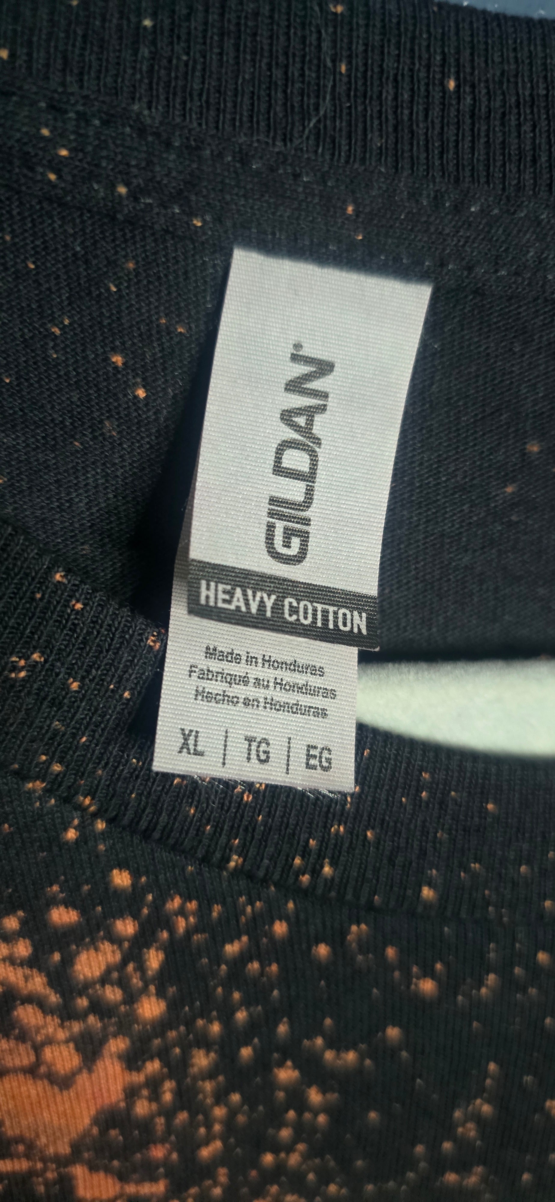 Soft heavy cotton feel with a relaxed unisex fit. The bleach pattern is part of the design, giving each shirt a unique, edgy look.